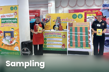 Sampling – hỗ trợ tiếp cận trực tiếp khách hàng mục tiêu thông qua trải nghiệm dùng thử sản phẩm, từ đó tăng nhận diện, tạo niềm tin và thúc đẩy hành vi mua hàng hiệu quả.